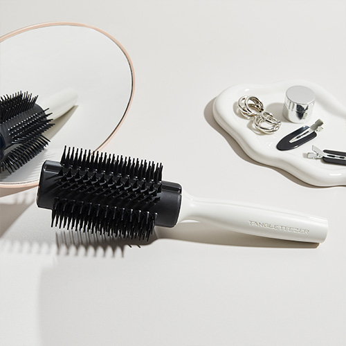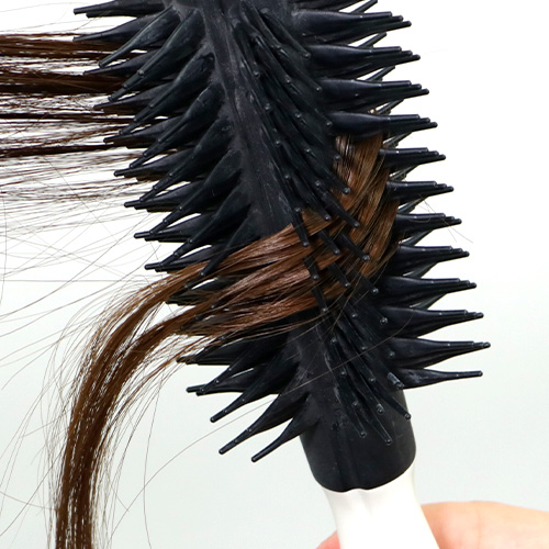 根元が太くなったブラシ形状と、重なり合うように配列されたブラシ構造により、キューティクルを整えながらブローすることが可能。ツヤとまとまりのあるスタイリングを実現します。