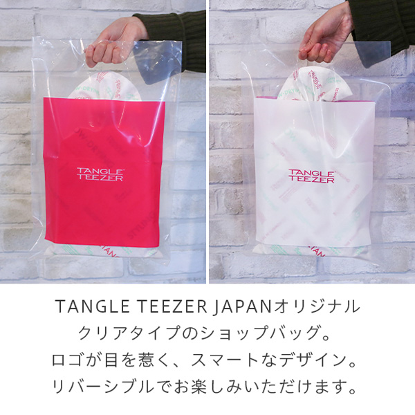 TANGLE TEEZER JAPANオリジナルクリアタイプのショップバッグ。 ロゴが目を惹く、スマートなデザインは、リバーシブルでお楽しみいただけます。 公式オンラインストア限定のラッピングを入れて、お渡し用の袋としてご利用ください。 ショップバッグのみの販売は行っておりません。商品と一緒にご購入をお願いいたします。 サイズ:W285×H425mm