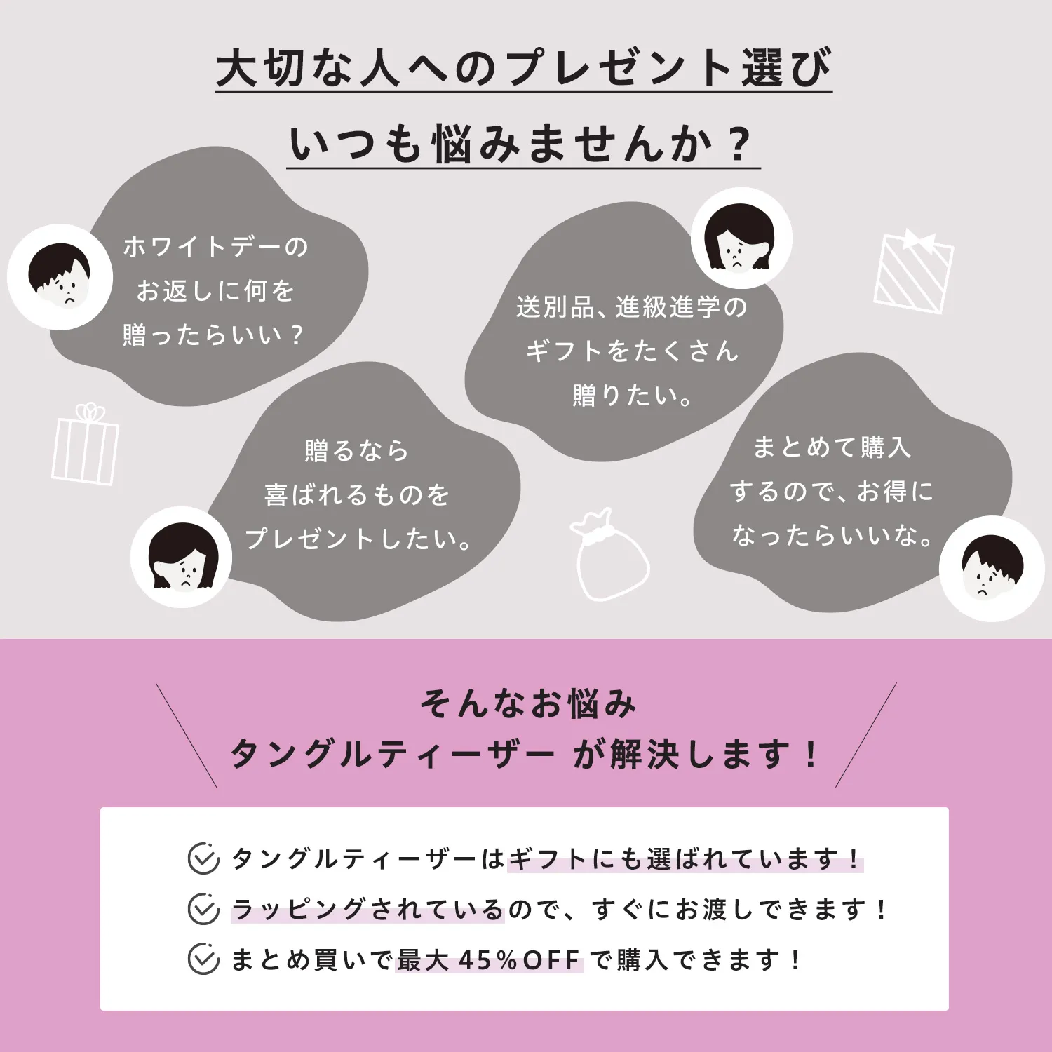 プレゼントでもタングルティーザーを使っていただけるよう、お配りギフト特別価格でお届けします!