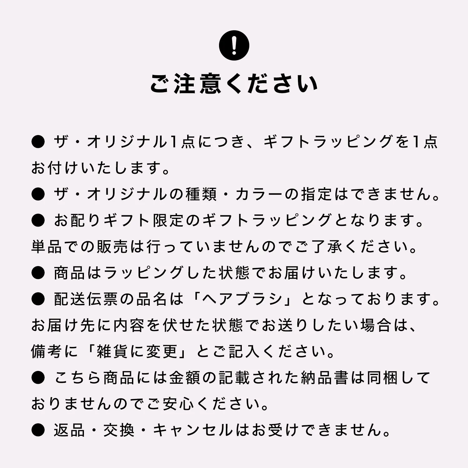 ○配送伝票の品名は「ヘアブラシ」となっております。お届け先に内容を伏せた状態でお送りしたい場合は、備考に「雑貨に変更」とご記入ください。