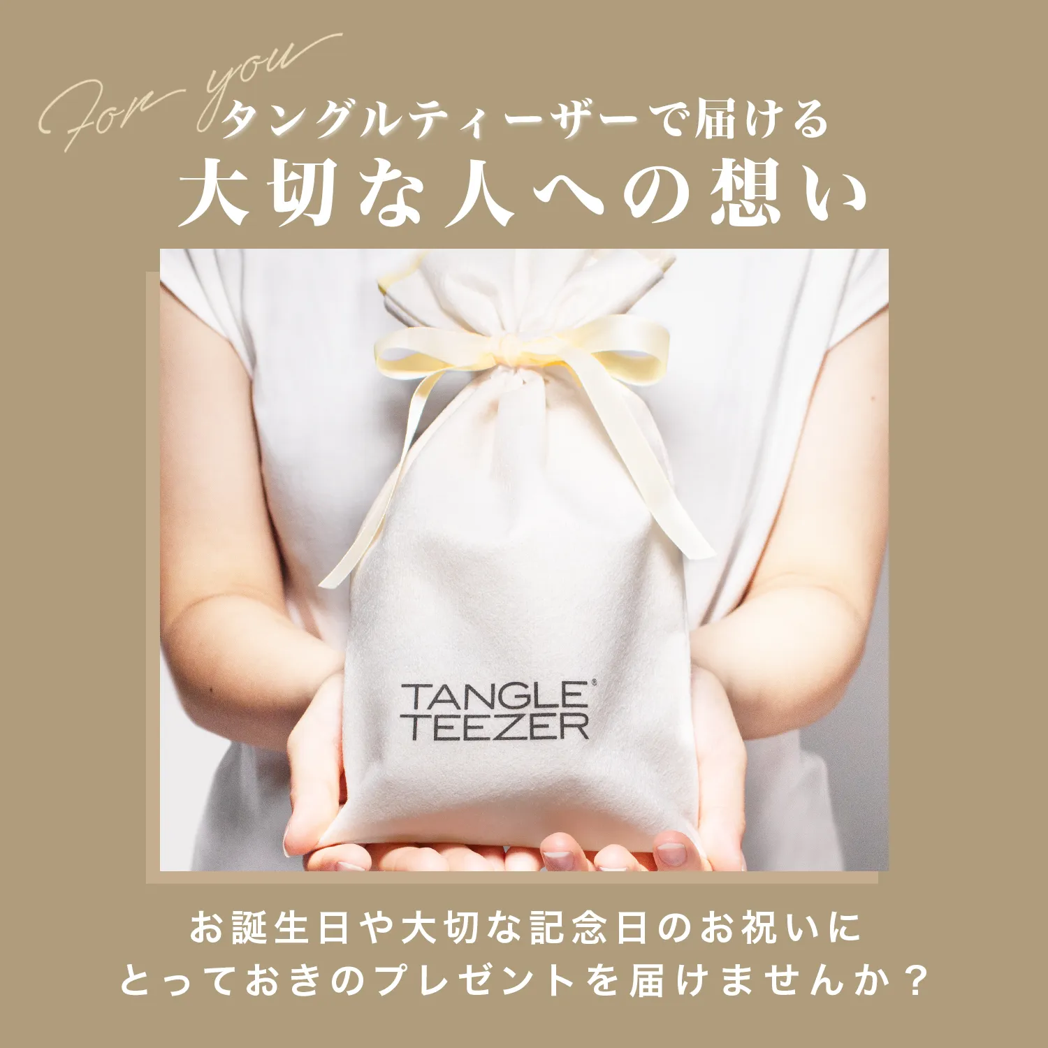 お祝いや感謝の気持ちを伝えたいときに。「TANGLE TEEZER」のロゴを載せたシンプルでスタイリッシュなデザイン。