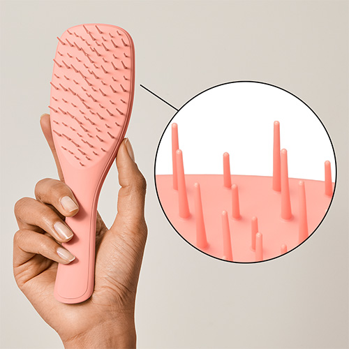 摩擦や引っ張りを抑える独自配列で、ブラッシングによる不要な抜け毛・切れ毛が発生しにくい状態をつくり、毛先までやさしく整えます。