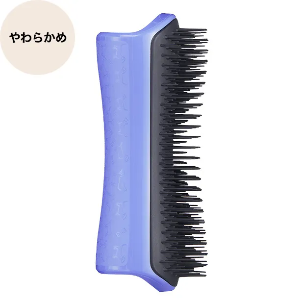 以前から愛用しているのですがインスタの広告でペット用が出来ていることを知り自分の携帯用と一緒に購入。ダブルコートなのでハードタイプを選びましたが試しに自分の手で触った感触は思ったより痛そうで心配でしたが使ってみたら本人は嫌がることもなく気持ち良さそうなので良かったです。絡まった猫っ毛も解れやすいと思います。届いて手に取るまで気づかなかったのですが表面に地模様が入っていて然り気無く可愛いです。あとあまりない形ですが思いの外手にフィットして持ちやすいです。