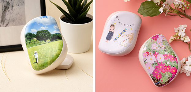 持ち歩きに便利なカバー付きヘアブラシ「コンパクトスタイラー」にお好きな画像をプリントできるサービスです。