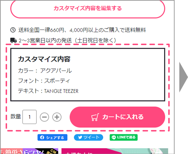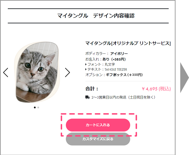カスタマイズ内容をご確認の上、「カートに入れる」を押してご購入手続きにお進みください。
