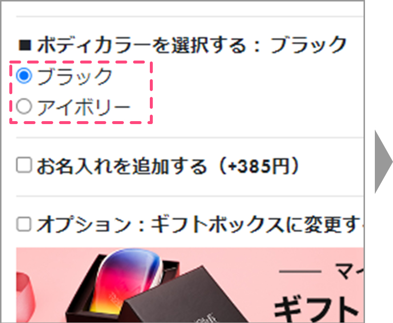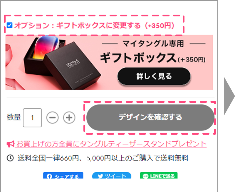 ギフトボックスに変更する場合は「ギフトボックスに変更する(+350円)」をチェックしてください。
